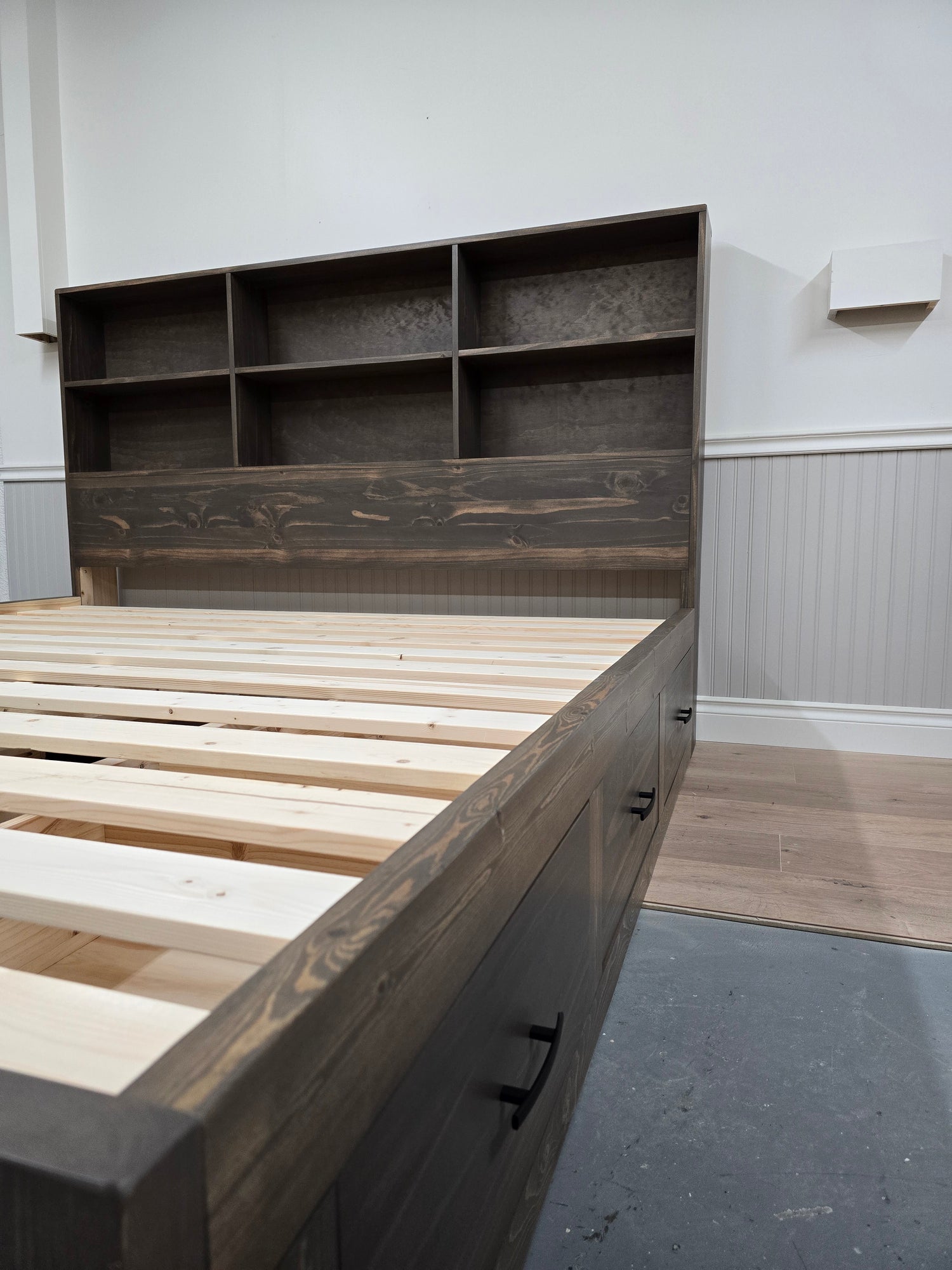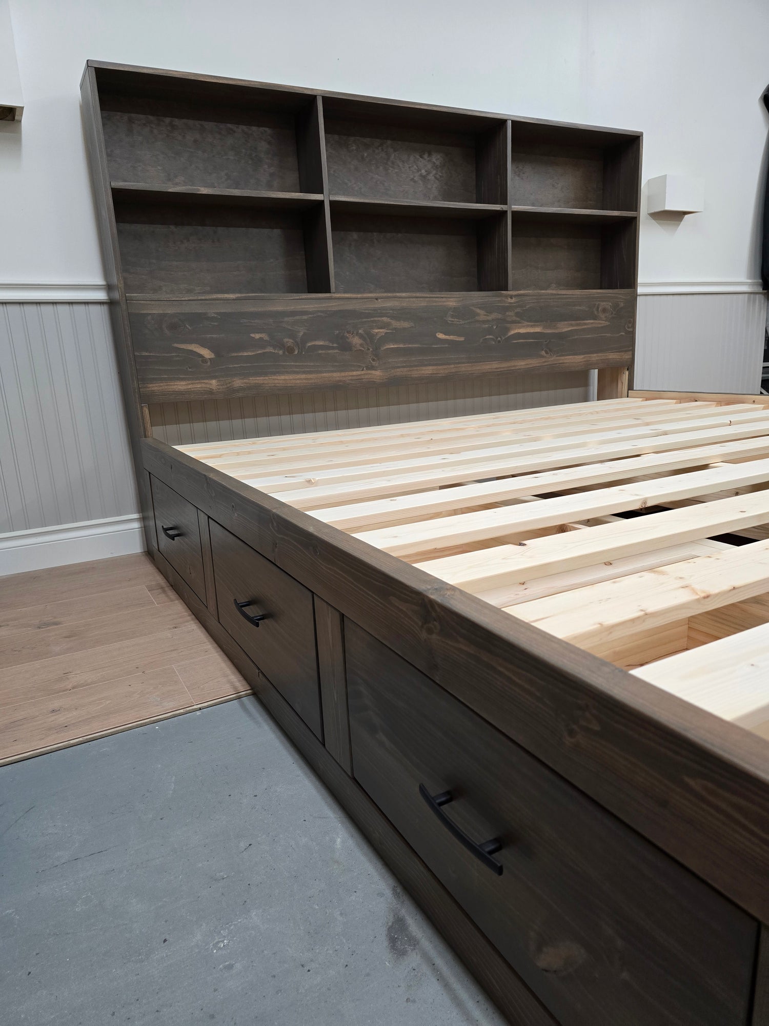 Our beds come in a variety of sizes including Double, Queen, and King. With all our storage beds eliminating the need for a box spring. Our storage beds can have 2 or 3 drawers on both sides. Each bed is constructed with bolt-type hardware, ensuring exceptional sturdiness and longevity. Choose from our versatile options to find the perfect bed that meets your needs and enhances your space.
