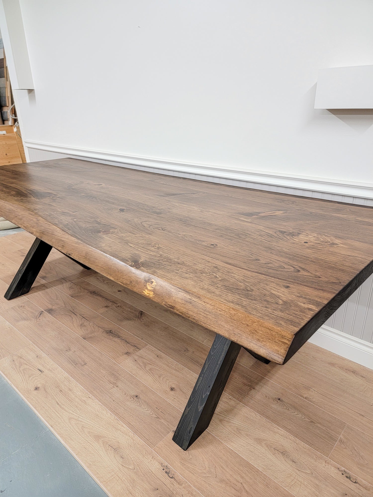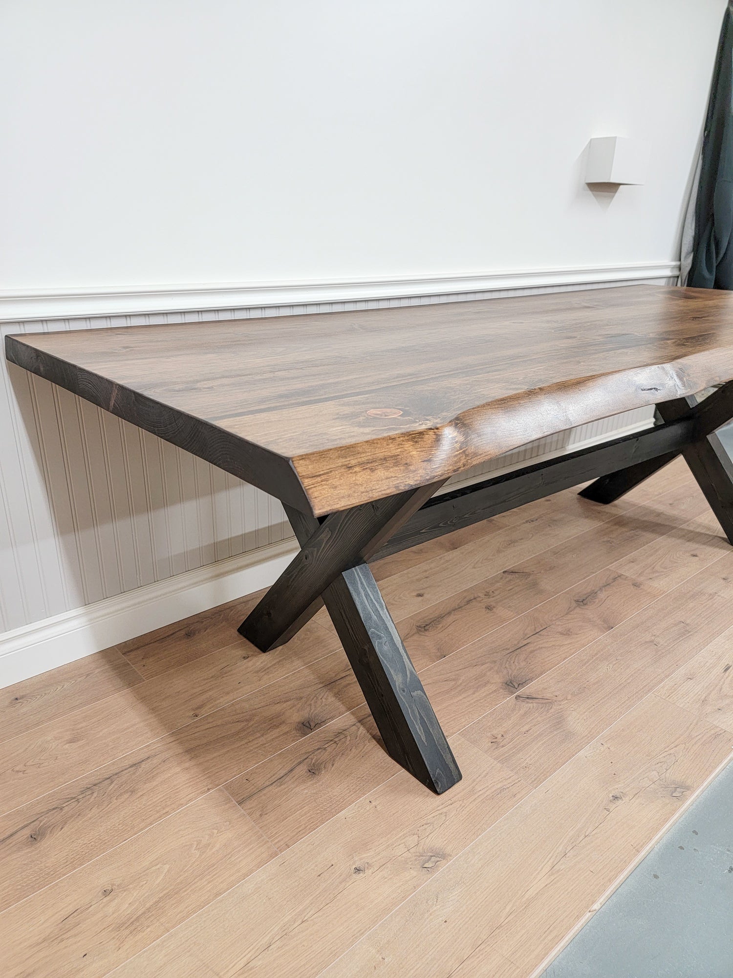 The Brampton Table, crafted from high-quality Eastern White Pine, offers a range of customizable design options. Choose between a straight edge or a live edge to match your style, and opt for a wood base or a sleek powder-coated black metal base for a modern touch. The natural beauty of Eastern White Pine, combined with these versatile base options, ensures the Brampton Table enhances any dining area or workspace with its blend of rustic charm and contemporary elegance.