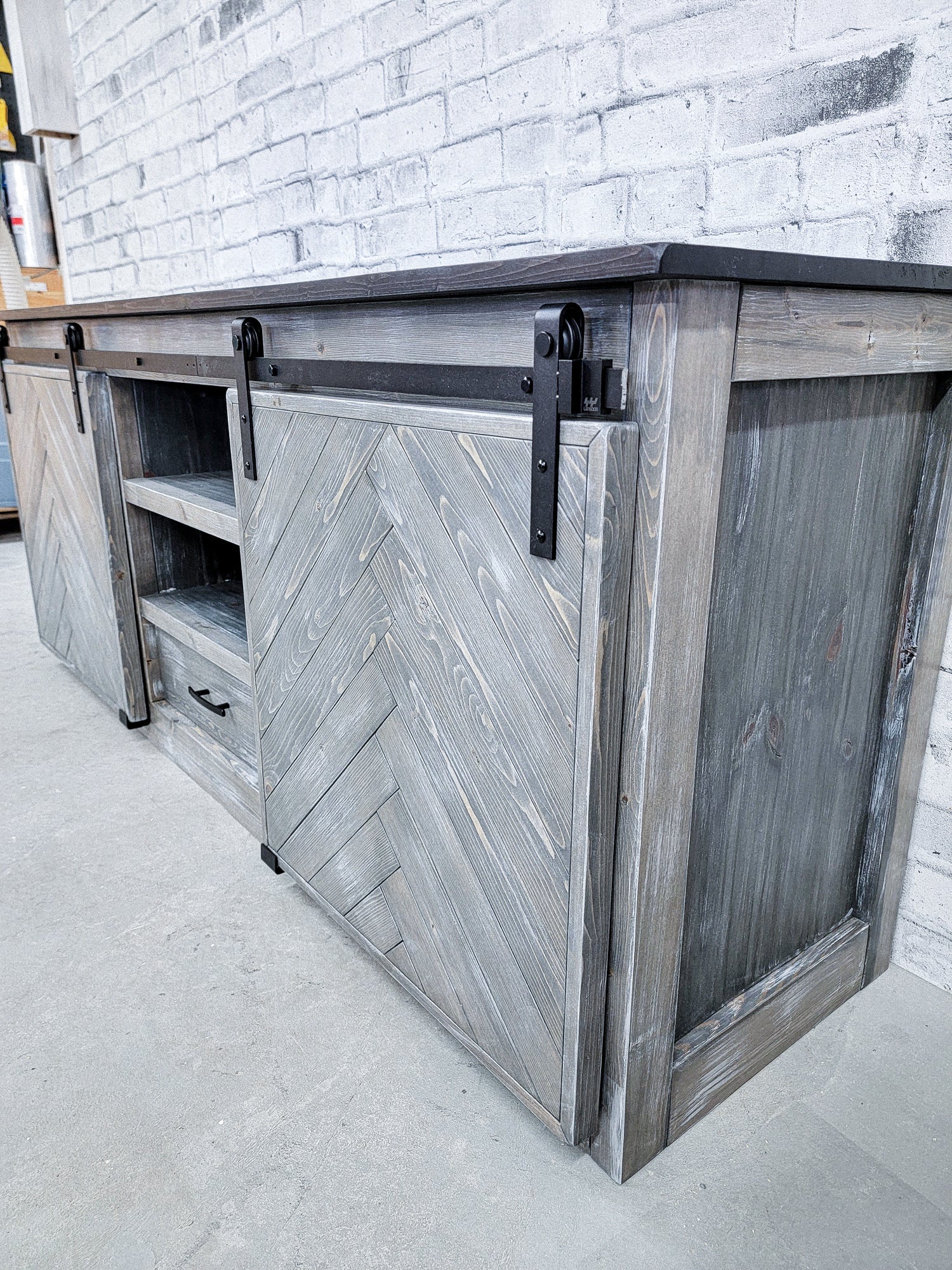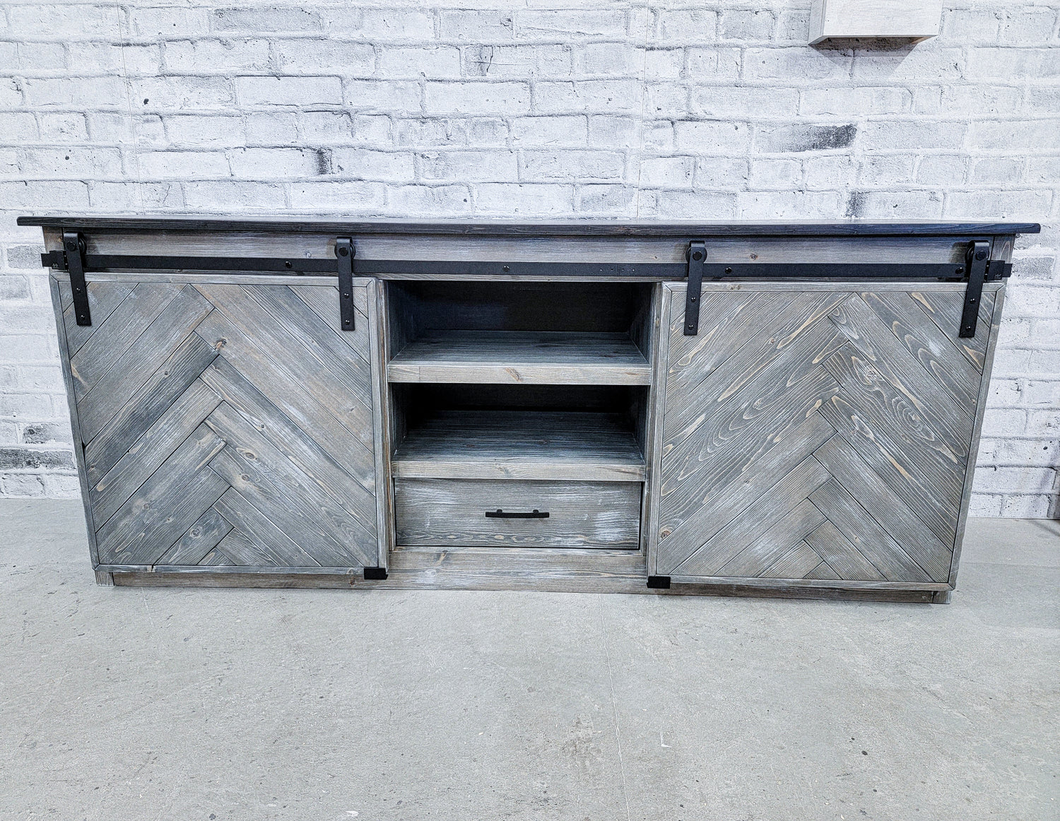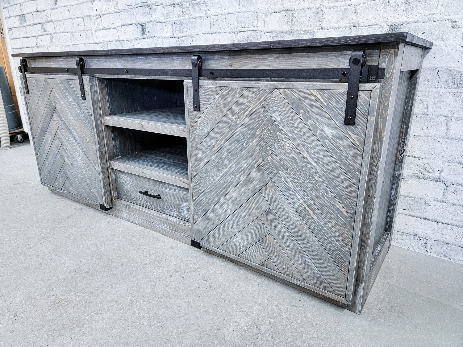 The Chevron Media Stand combines rustic charm with modern functionality. Featuring sliding chevron barn doors on high-quality hardware, it offers a stylish and practical solution for organizing your media equipment and accessories. The stand’s design allows for easy access to your items while maintaining a sleek, unobtrusive look. Customizable in various ways, the Barn Door Media Stand can be tailored to fit your specific needs and decor, making it a versatile and attractive addition to any living space.