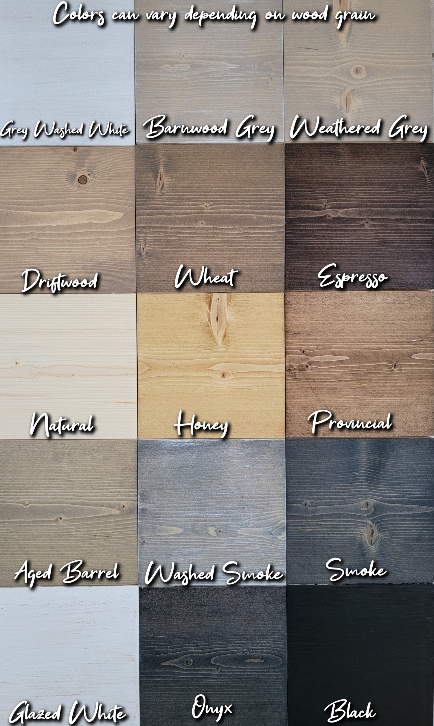 We offer a wide range of colors that can be seen on our color chart. Please note that colors can vary in different lighting, and the natural wood grain and pattern can alter the look of the stain, making each piece unique and one of a kind. Some colors may not be advised for certain pieces due to these variations, and we may contact you to discuss the best options for your custom furniture. Our goal is to ensure you receive a beautifully finished product that meets your expectations.