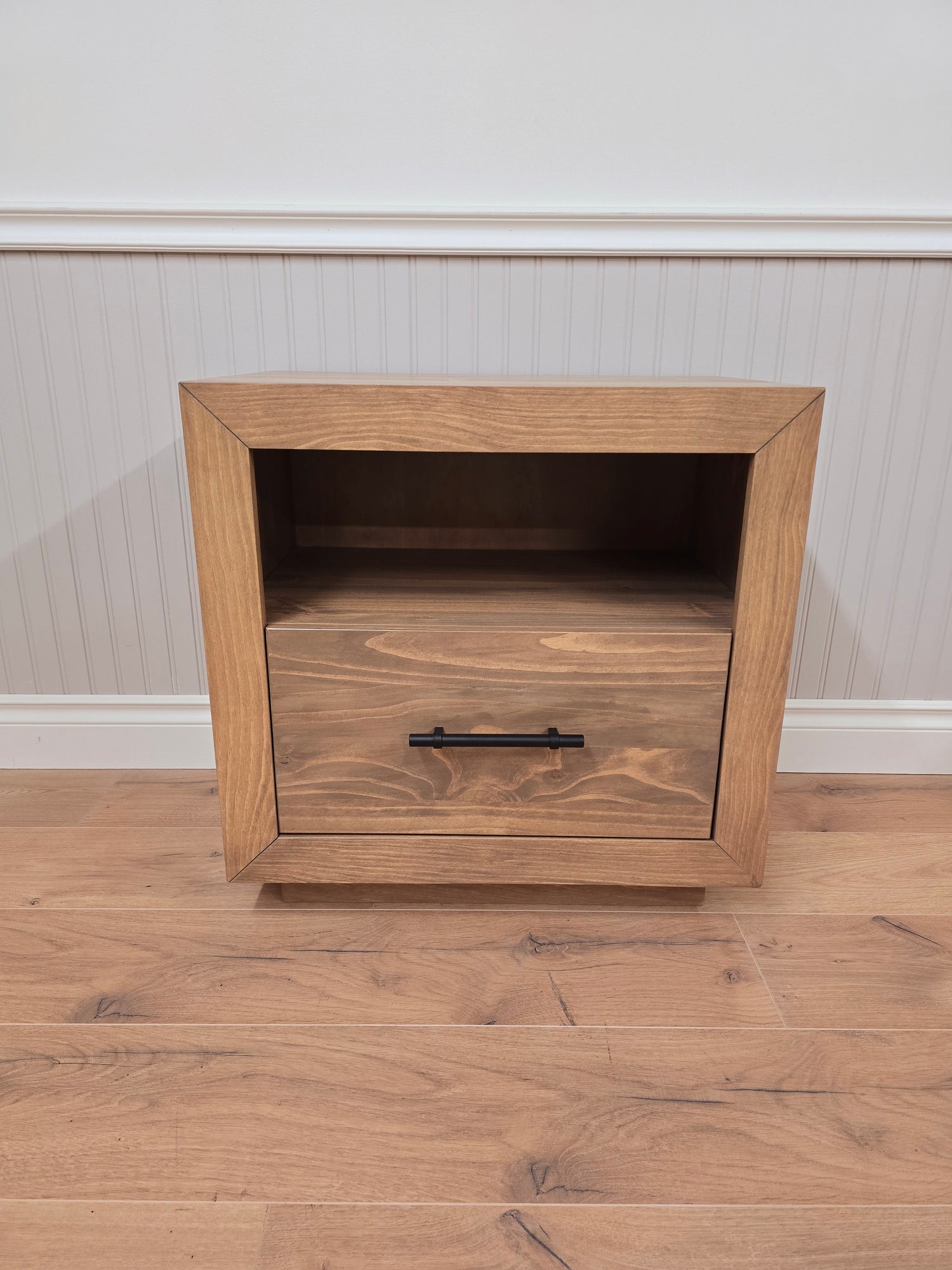 The Heritage Nightstand combines classic design with practical features. It includes one drawer for concealed storage and a spacious shelf above for easy access to books, decor, or other essentials. Its versatile design makes it a perfect addition to any bedroom, offering both functionality and style.