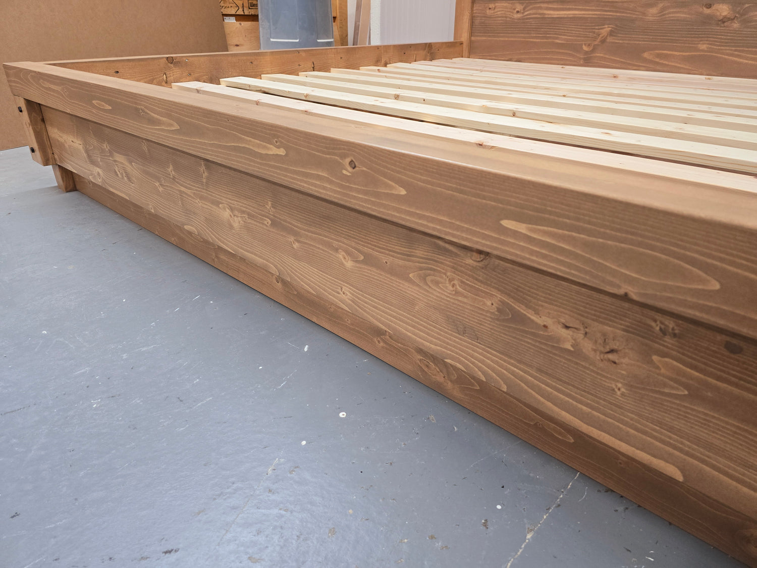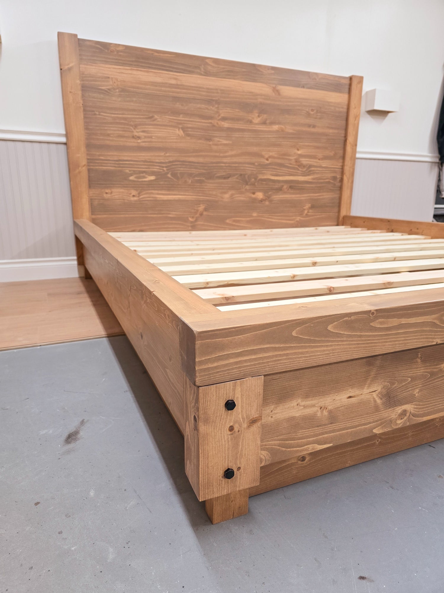 Our beds come in a variety of sizes including Queen, and King. You have the flexibility to use a box spring or just a mattress. Each bed is constructed with bolt-type hardware, ensuring exceptional sturdiness and longevity. Choose from our versatile options to find the perfect bed that meets your needs and enhances your space.