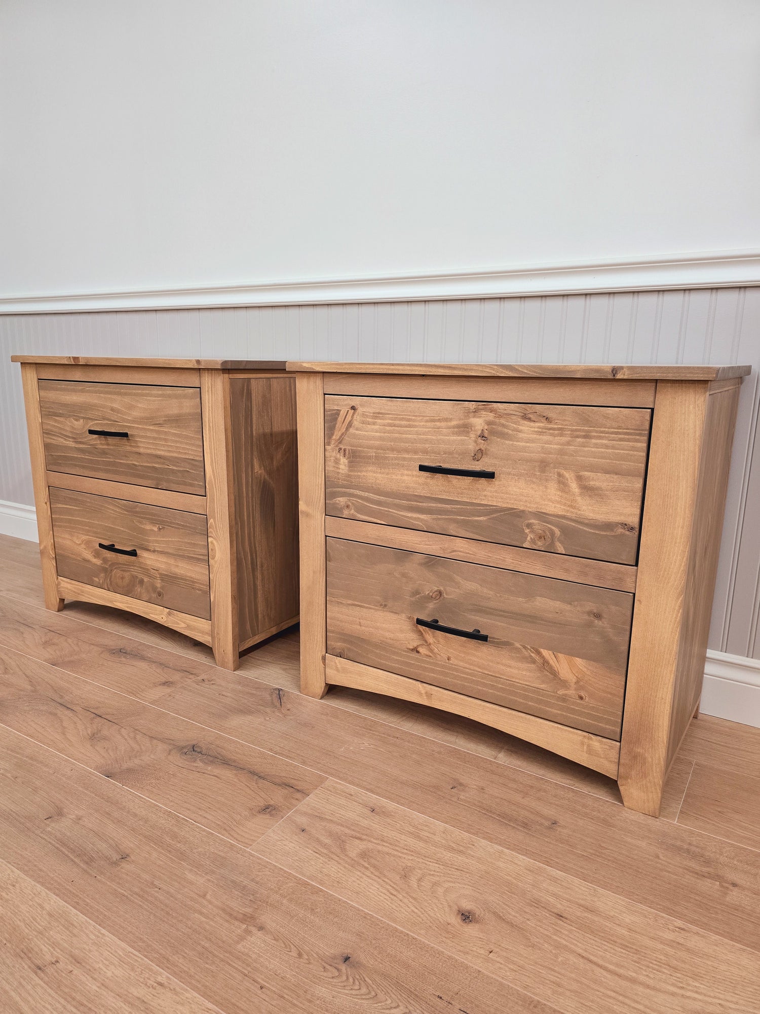 We take pride in the construction of our drawers, ensuring durability. Each drawer box is crafted from solid Eastern White Pine. The drawer bottoms are made from thicker quality plywood and are recessed into slits within the drawer box. This design ensures they remain sturdy and resist bowing or breaking over time.
