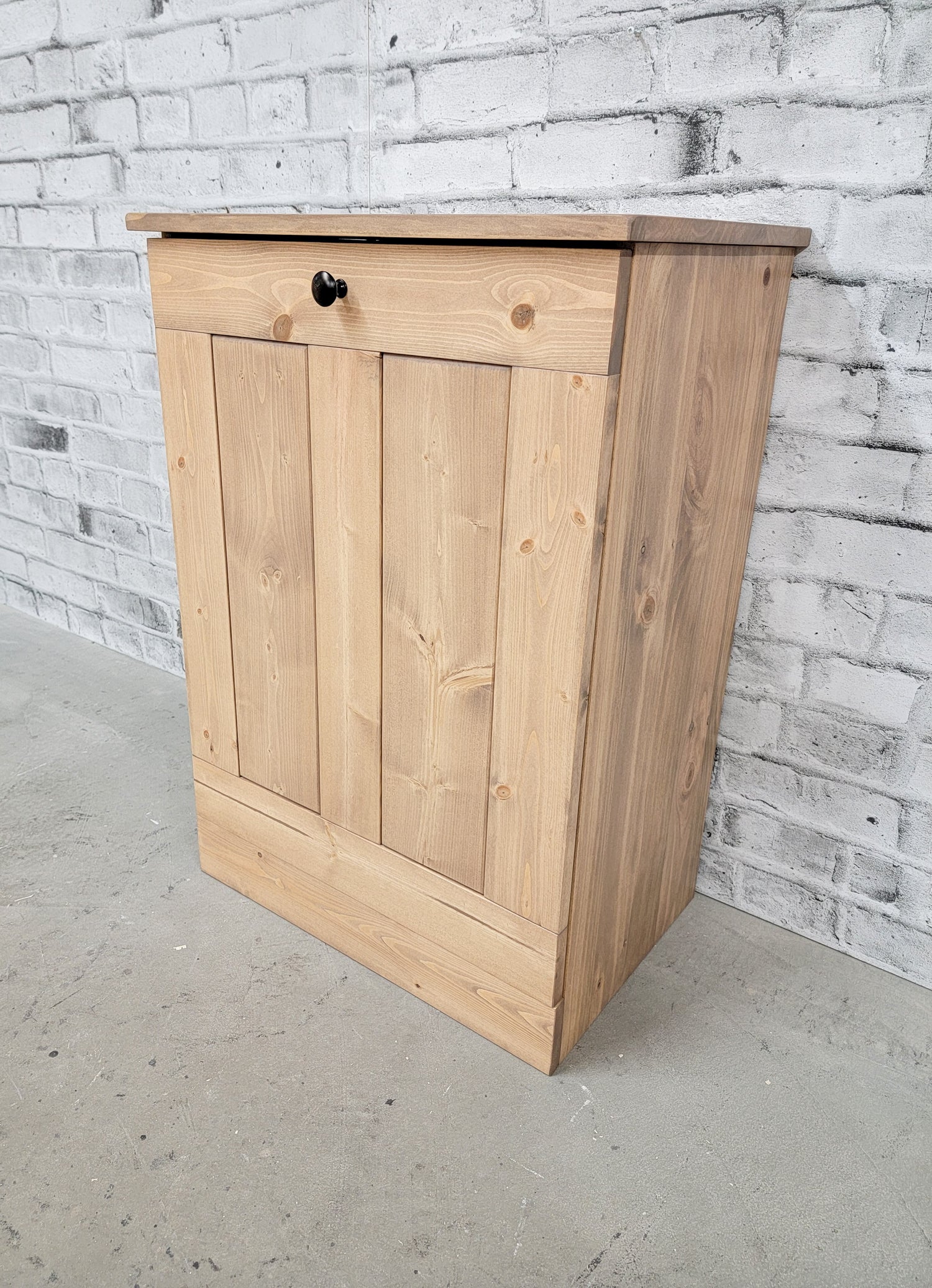 The Single Tilt Out Garbage Cabinet offers a sleek and functional solution for managing waste while doubling as a versatile storage piece. Featuring one tilt-out door, it accommodates a 50L garbage bin (customer-supplied), keeping waste neatly concealed. The cabinet can be customized with or without one drawers above the door, providing additional storage. Its modern design also makes it an ideal choice for a coffee bar setup, offering a stylish and practical way to organize your coffee essentials and maintain a clutter-free space.