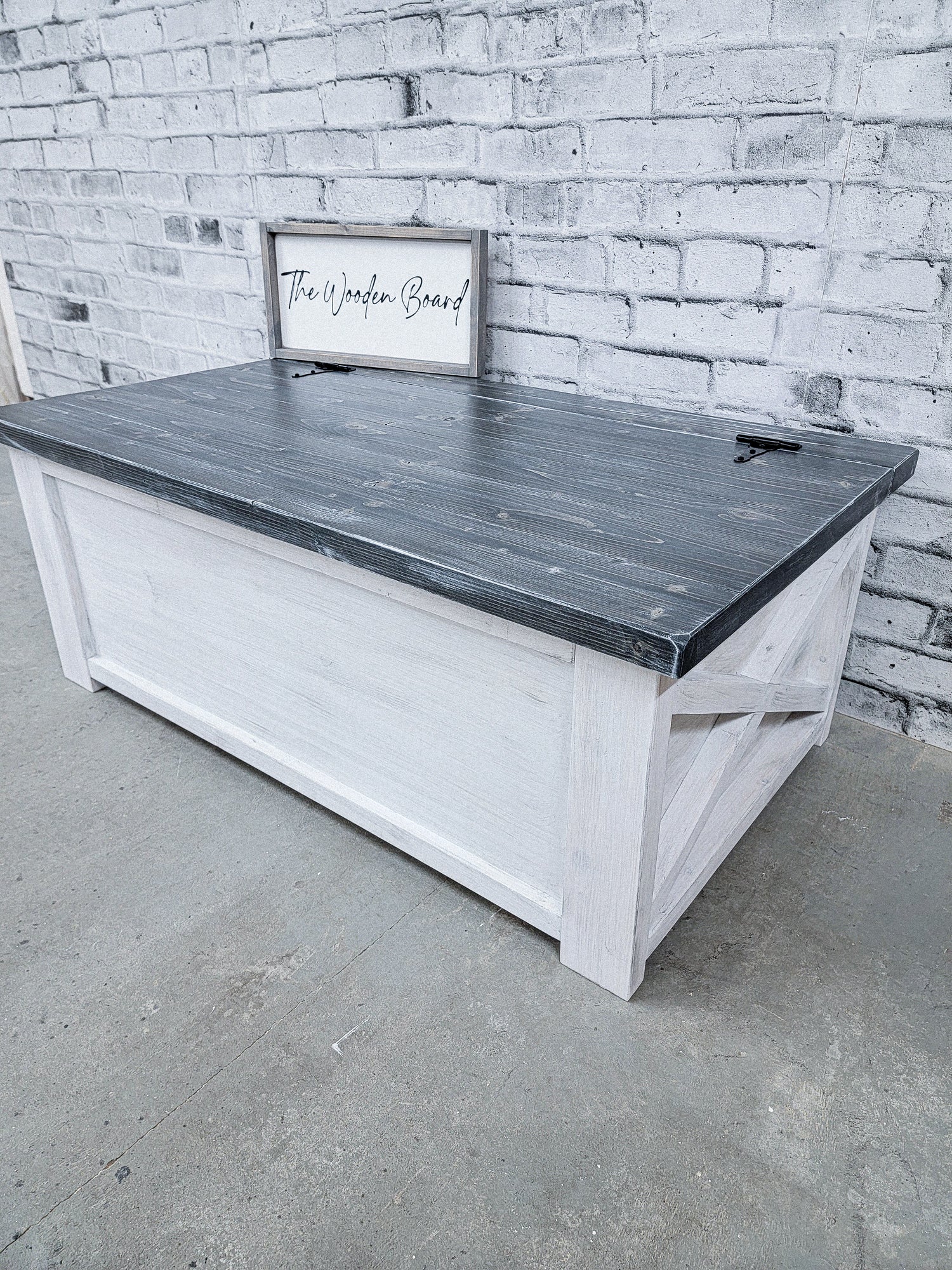 The Trunk Coffee Table combines classic design with ample storage. Featuring a lid that open to reveal a spacious interior, it provides plenty of room to store books, blankets, or other living room essentials. Its trunk-inspired design adds a touch of vintage charm while offering practical functionality. Perfect for keeping your space organized and stylish, the Trunk Coffee Table is both a functional and eye-catching centerpiece for any living area.